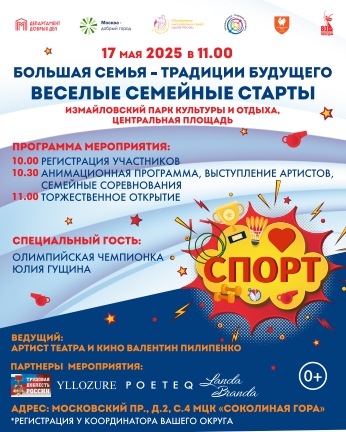 Региональная общественная организация «Объединение многодетных семей города Москвы» приглашает москвичей и гостей столицы на соревнования «Весёлые семейные старты» 17 мая в Измайловский парк культуры и отдыха.